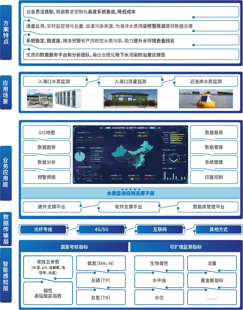 該系統(tǒng)可應(yīng)用于近海海域、入海口等環(huán)境水質(zhì)監(jiān)測(cè),可及時(shí)、準(zhǔn)確地反映水質(zhì)現(xiàn)狀及變化趨勢(shì),為水體環(huán)境監(jiān)測(cè)、預(yù)警、管理、規(guī)劃等提供準(zhǔn)確的實(shí)時(shí)數(shù)據(jù)。