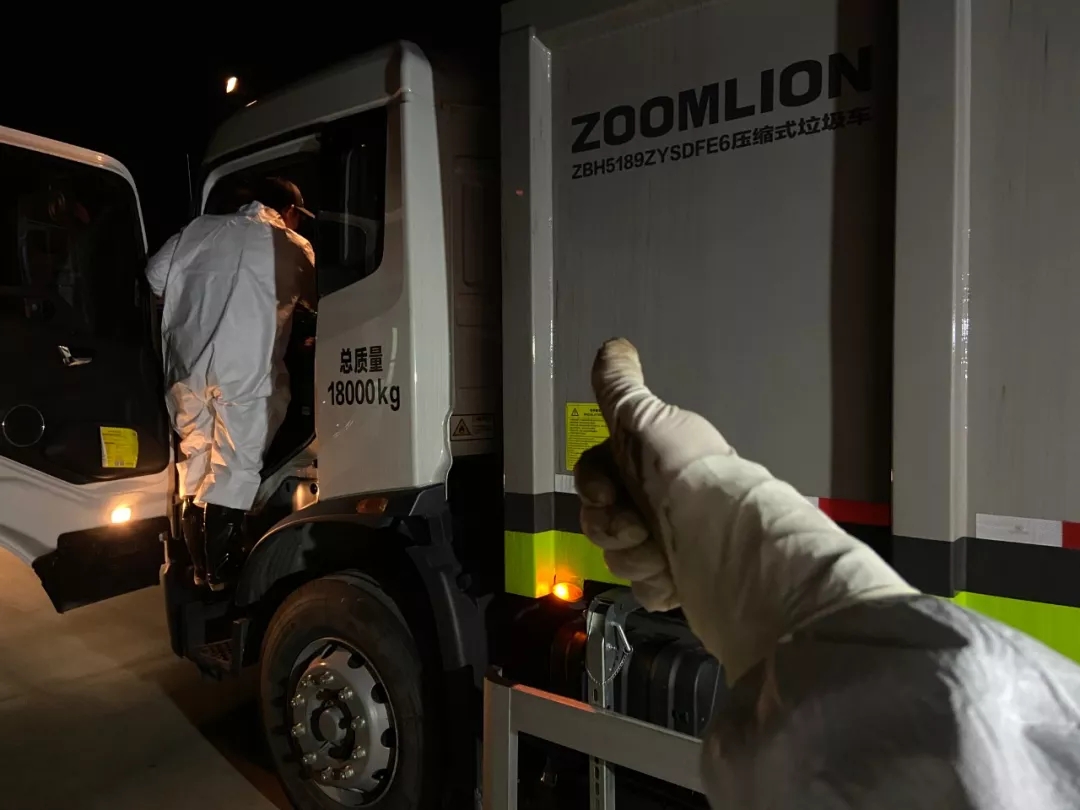 漢川市城市管理局應(yīng)對疫情,緊急采購多臺無泄漏壓縮式垃圾車,并且急需培訓(xùn)后投入使用。孝感市是除武漢外第二嚴(yán)重疫區(qū),盈峰環(huán)境服務(wù)站長蔣篤,銷售經(jīng)理韓艦峰主動請纓,星夜奔赴湖北疫區(qū)。凌晨,公司與客戶在高速路口順利完成車輛交付及人員培訓(xùn)工作。